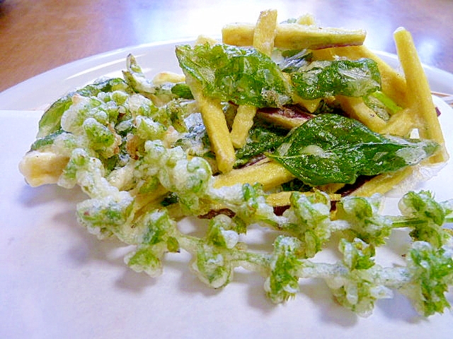 バジルの葉とさつま芋のかき揚げと花穂の天ぷら レシピ 作り方 By 身の茸335 楽天レシピ